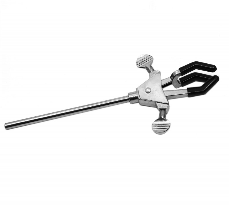| AMW-6025/1 | Powder Coated Three Prong Clamp Extention Double Keys Made of Pressure Die Cast Zinc Alloy, Powder Coated Body Three Prong PVC Sleeves Covered Jaw Is Double Adjustable type with the help of Double Mild Steel Thumb Type Screw Keys. Clamp fitted to 6" or 9" long mild steel Nickal plated row Accepts Objects up to 65 mm Dia |